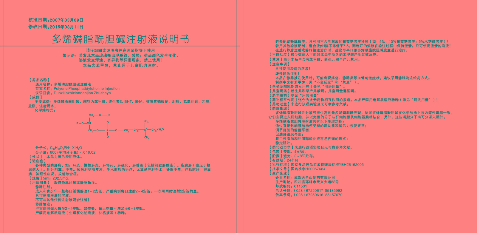 【通用名】多烯磷脂酰膽堿注射液